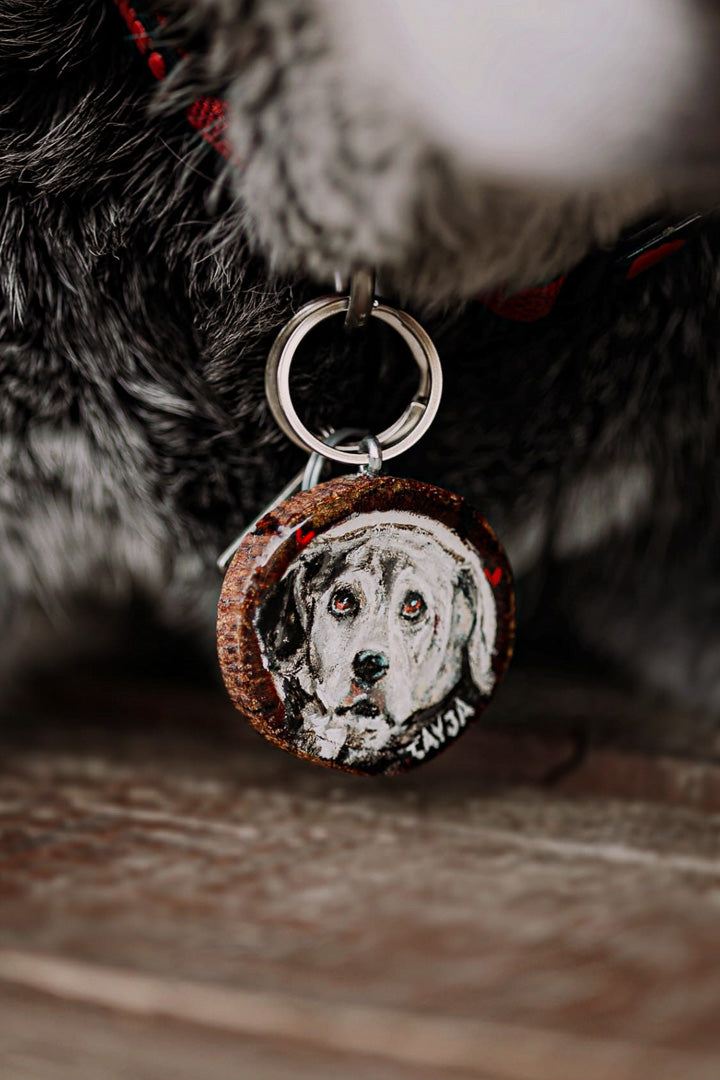 ID tags and keychains should be gently wiped with a soft, dry cloth. Avoid prolonged exposure to water or harsh chemicals to preserve the artwork.